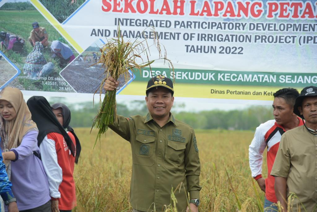“Bupati Sambas bersama kepala Dinas dan OPD dilingkungan Pemerintah Kabupaten Sambas hadir di desa Sekuduk Kecamatan Sejangkung dalam Menghadiri panen raya padi dari kelompok Tani Sekolah Lapangan Petani, dengan demikian maka ini menandakan bahwa Kabupaten Sambas ini memang sebuah lumbung padi yang benar adanya,” ungkapnya.