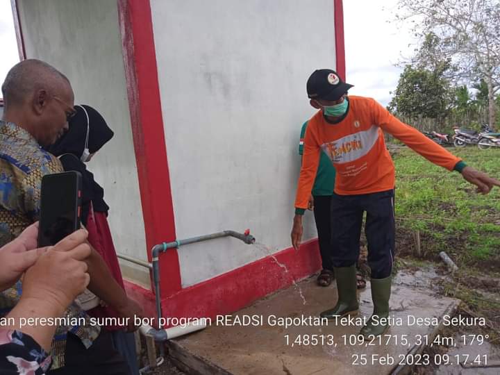 Peresmian Sumur Bor Program READSI pada Kegiatan Bidang Penyuluhan, untuk Gapoktan Tekad Setia Desa Sekura Kecamatan Teluk Keramat, Sabtu (25/2/2023).