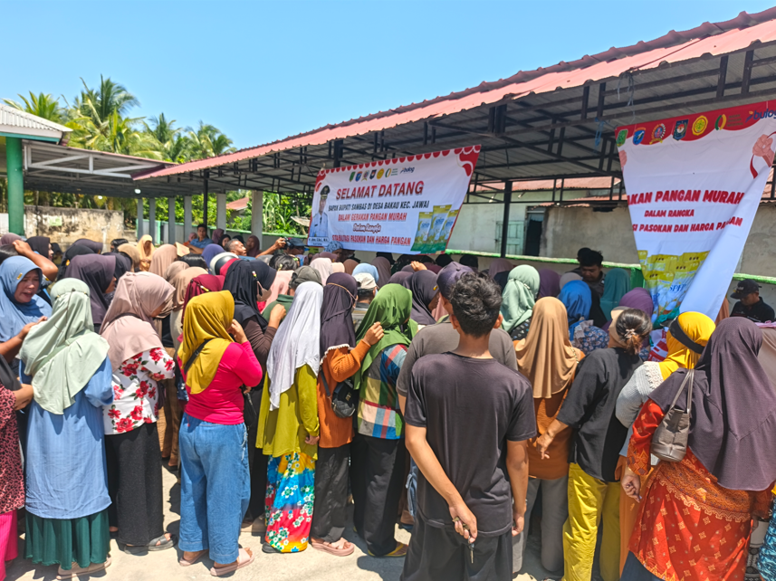 “Ada sekitar delapan ton beras yang kami siapkan. Untuk Desa Bakau sekitar tiga ton, dan di Desa Dungun Laut lima ton. Di pasaran harga beras lima kilogram bisa mencapai enam puluh ribu, namun melalui program ini masyarakat bisa mendapatkannya seharga lima puluh ribu berkat subsidi dari pemerintah,” jelasnya.