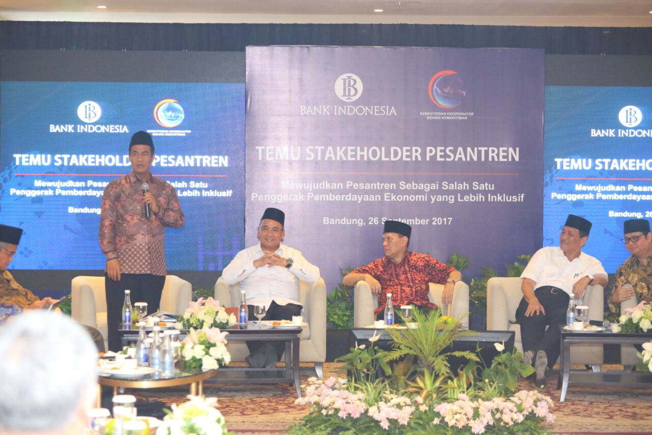 ??Sementara itu, Gubernur BI, Agus Martowardojo, mengungkapkan, pihaknya menggelar “Temu Stakeholder Pesantren” dengan mengundang sejumlah menteri di sektor ekonomi dalam rangka meneguhkan komitmen kehadiran pemerintah pusat di daerah. Pemilihan Jawa Barat sebagai lokasi acara, juga bukan tanpa alasan. Pertimbangannya, meski kontribusi perekonomian di Jabar cukup tinggi sekira 5,3 persen, namun tidak merata.
